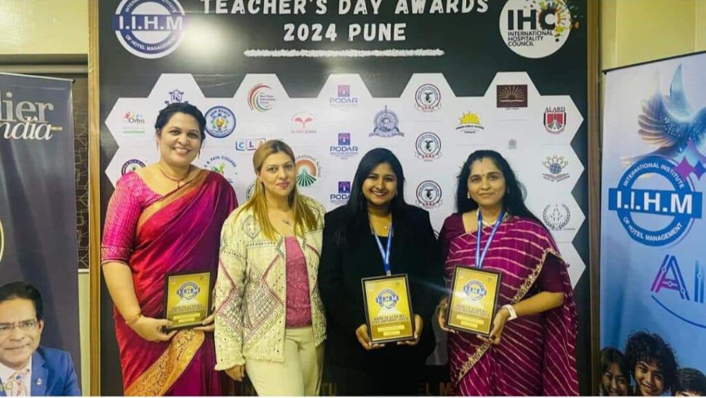 Ms. Clasida, Ms. Razia Ajnawala, and Ms. Varsha Shinde have been honored with the IIHM Teachers Day Award 2024 at IIHM Pune.